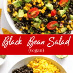 This black bean salad recipe makes a yummy side dish or vegan/ vegetarian main dish that is so simple, flavorful and satisfying!