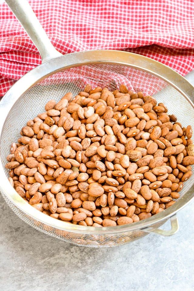 Rinse off your pinto beans, and drain them using a wire mesh strainer.