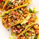 These Grilled Chicken Street Tacos taste just like something you’d get from a taco truck, but you can make them at home in about an hour. The chicken soaks up a citrus-garlic marinade, then cooks quickly, leaving you with juicy, slightly charred pieces that fit perfectly in warm corn tortillas. Add your favorite toppings like guacamole and pico de gallo, and don’t be surprised if everyone eats more than they expected.